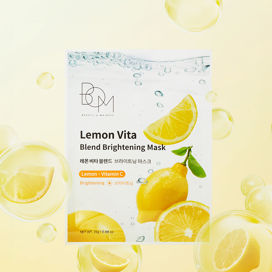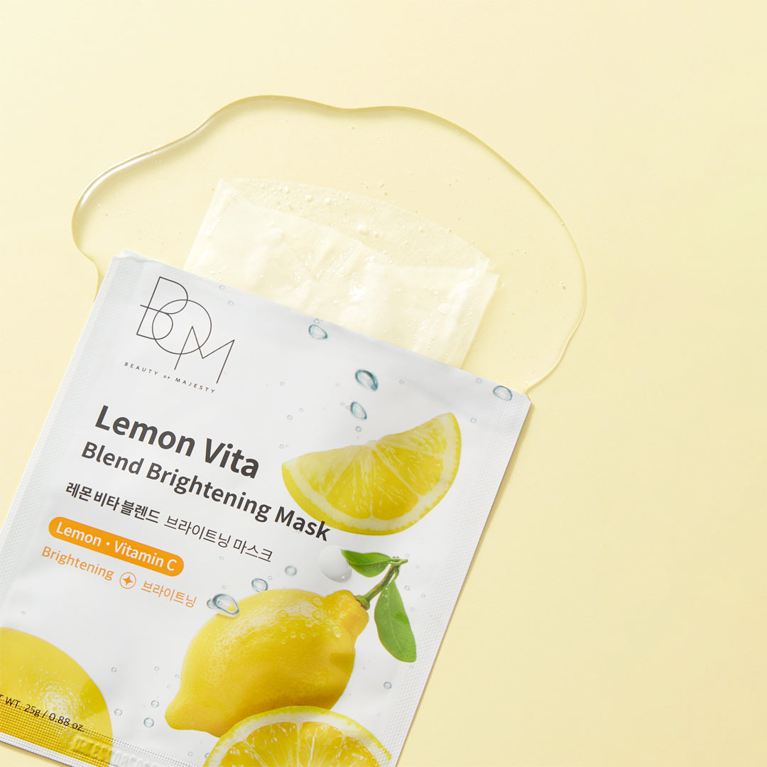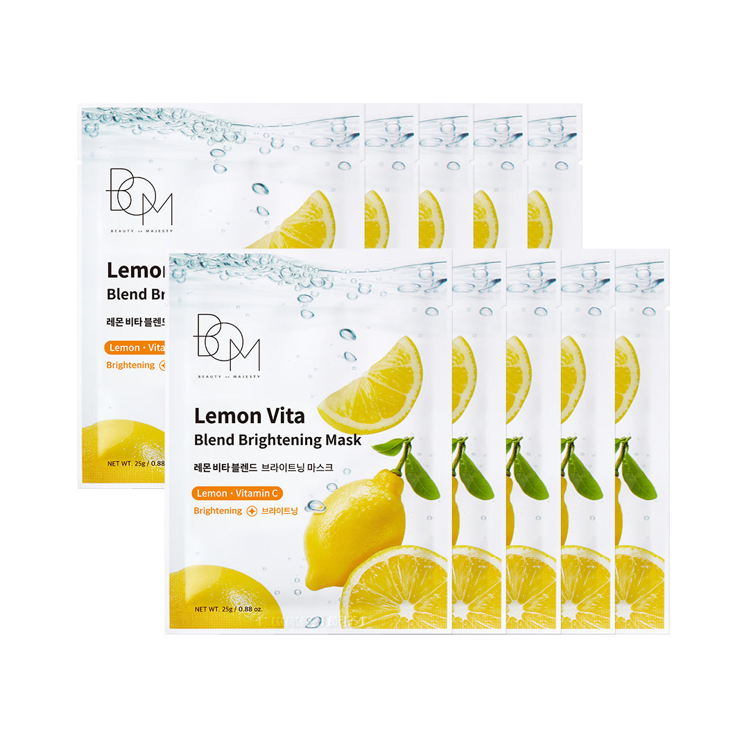 BOM Lemon Vita Blend Brightening Mask - skaistinančios odą lakštinės veido kaukės, 10vnt