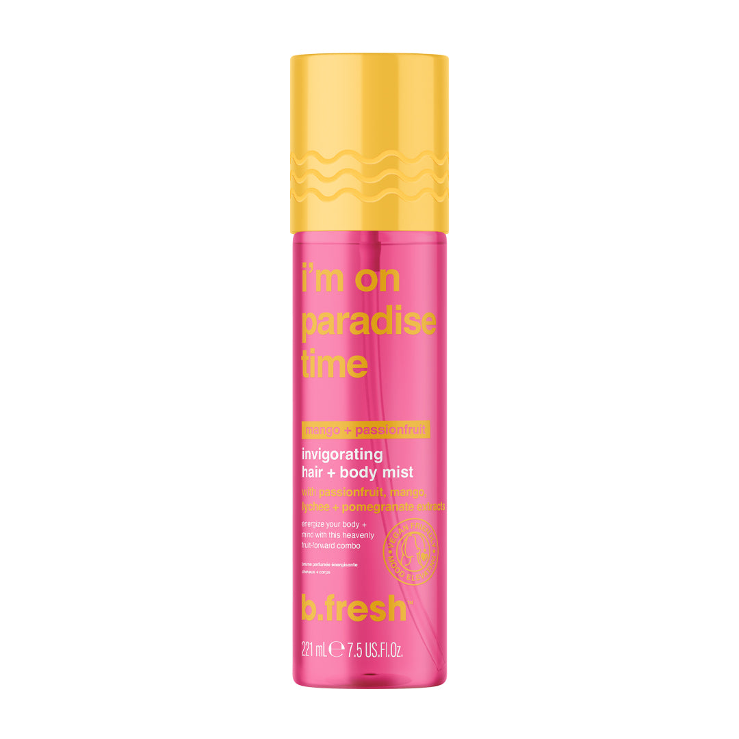 I’m on Paradise Time – tai tropinių vaisių prisilietimas jūsų nuotaikai ir išvaizdai. Sudėtyje esantys mango, pasiflorų, ličių ir granatų ekstraktai suteikia odai drėgmės, maitina bei atgaivina, o plaukams – žvilgesio ir švelnumo. Šis purškiklis akimirksniu pažadina pojūčius ir suteikia energijos dienai, pripildydamas mango, pasiflorų ir ličių aromato tropine gaiva.
