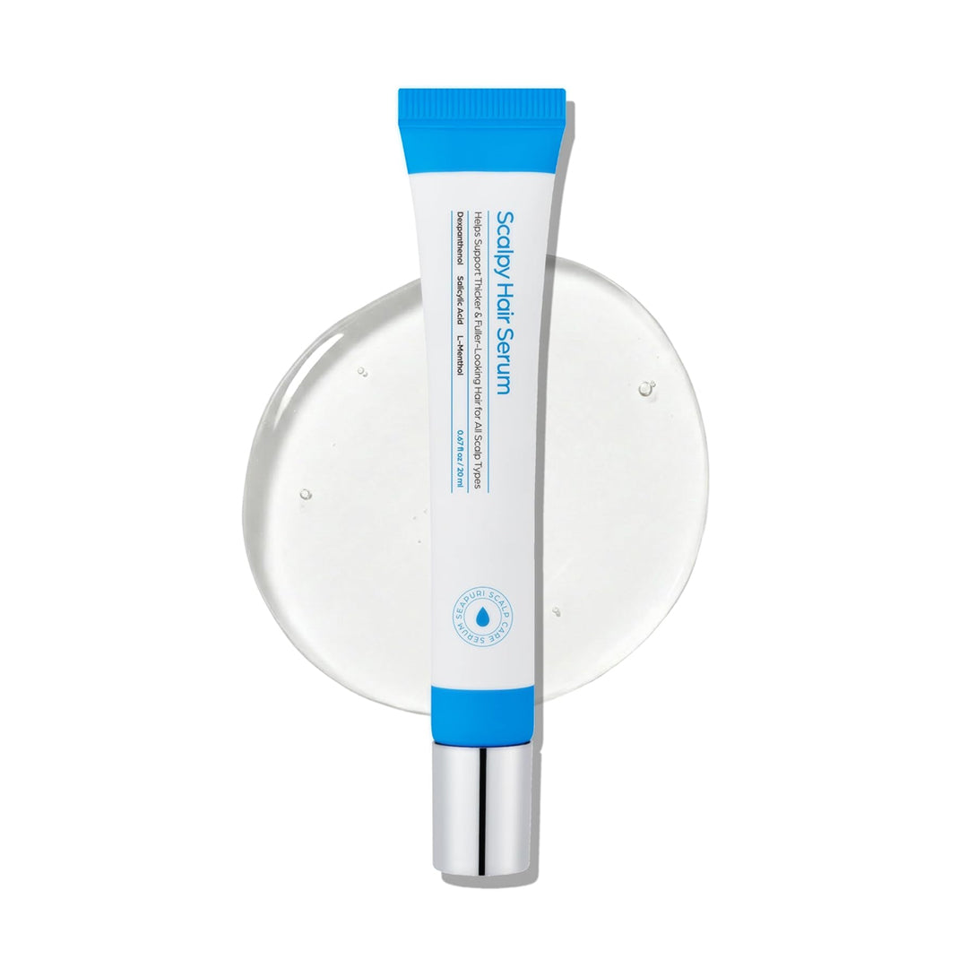 SEAPURI Scalpy Hair Serum - lengvas, greitai įsigeriantis galvos odos serumas, skirtas plaukų slinkimui mažinti ir stipresnių, tankesnių plaukų augimui palaikyti. Klinikiniais tyrimais patvirtinta formulė padeda aktyvinti neaktyvius plaukų folikulus, gerinti plaukų būklę ir palaikyti sveiką galvos odos balansą.