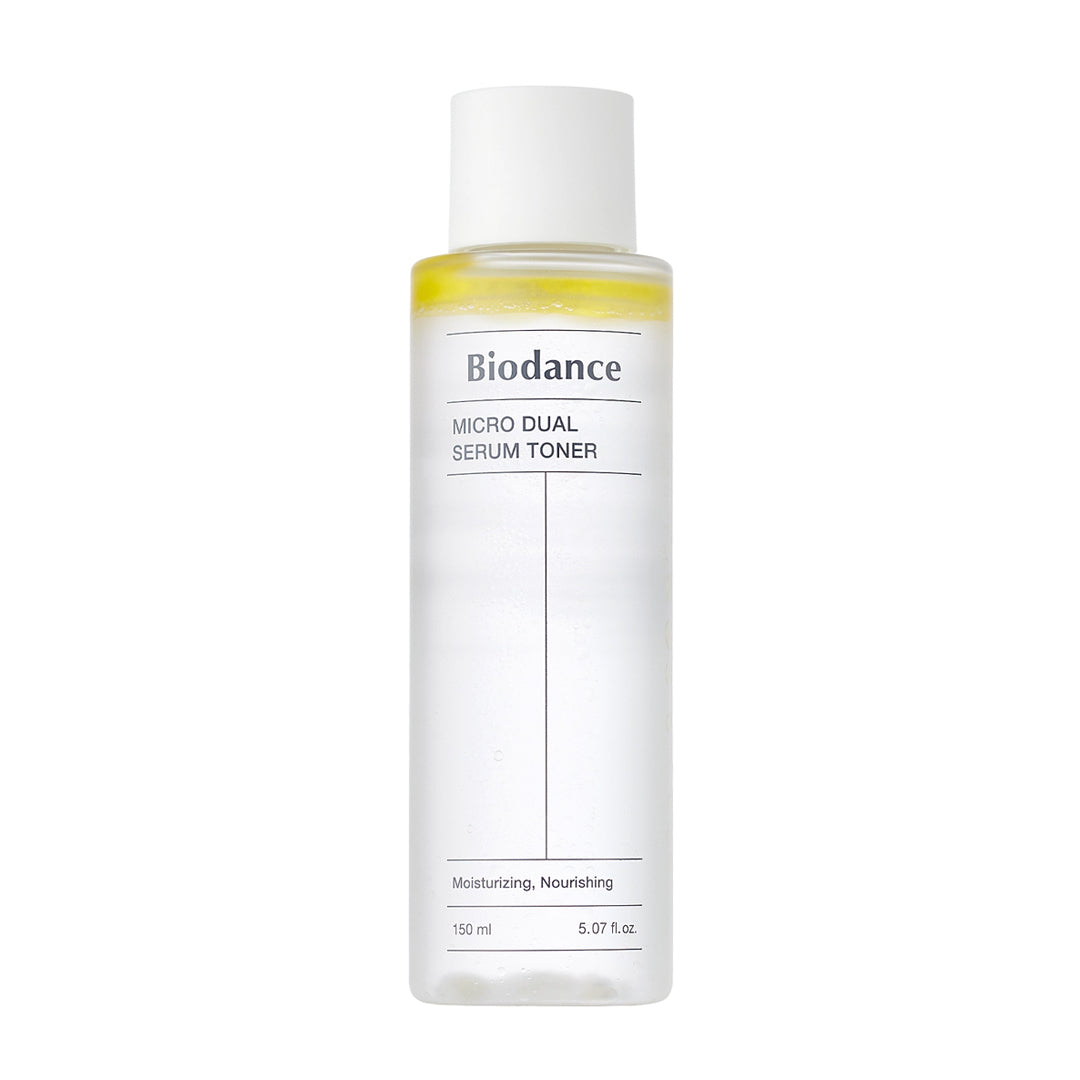 Biodance Micro Dual Serum Toner - drėkinamasis veido tonikas, sukurtas odos drėkinimui, komforto jausmo atstatymui ir odos paruošimui tolimesnėms priežiūros priemonėms. Šis tonikas padeda palaikyti optimalią odos drėgmę, subalansuoja odos pH ir ruošia odą serumo bei kremo absorbcijai.