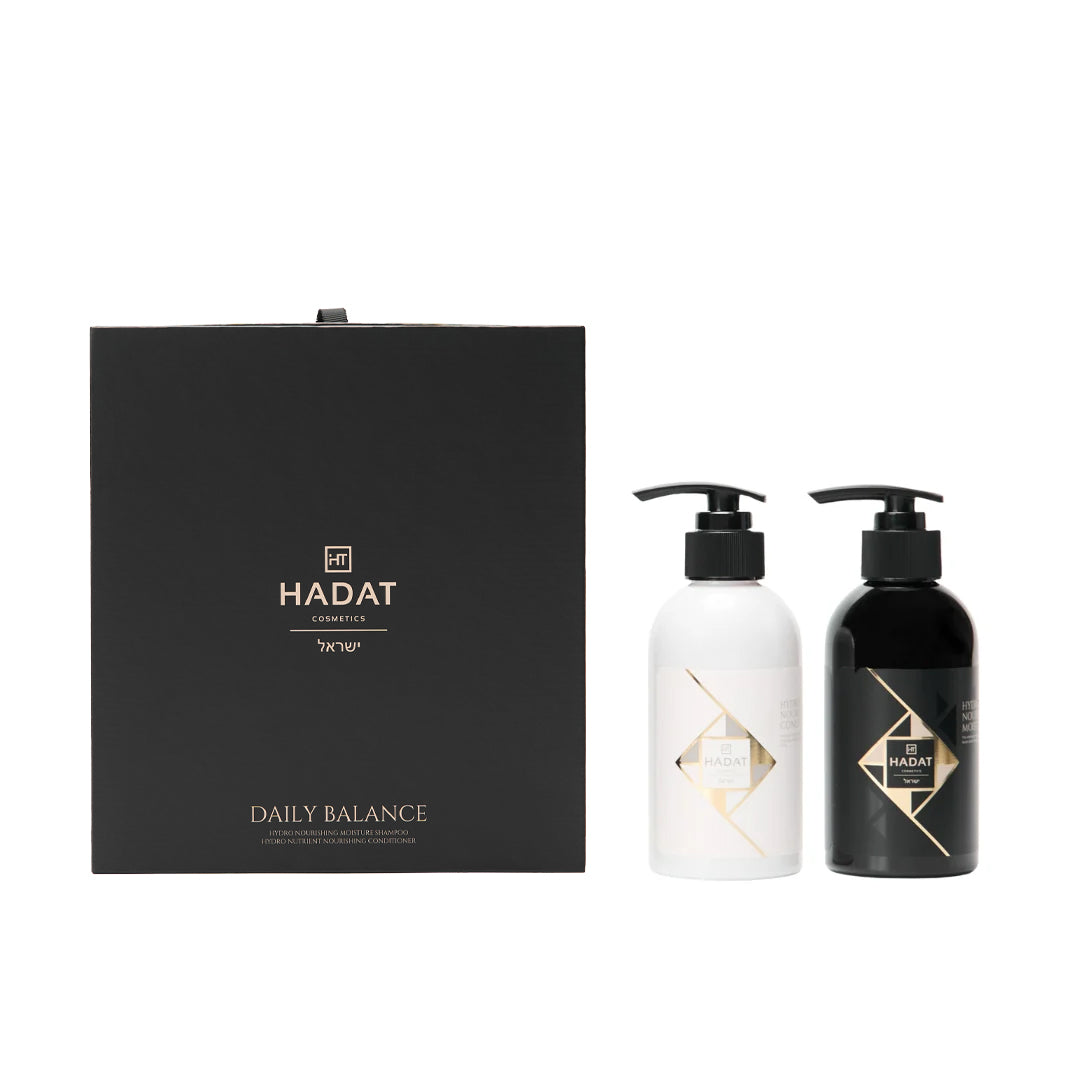 Rinkinyje esantis Hadat Cosmetics Hydro Nourishing Moisture Shampoo (250 ml) švelniai valo, atkuria drėgmės lygį ir stiprina normalius bei sausus plaukus. Plaukai tampa mažiau trapūs, atrodo sveikesni ir labiau žvilgantys, o šaknys – lengvai pakeltos. Formulėje – dumblių ekstraktai, arbatmedžio aliejus ir taukmedžio sviestas, o pats šampūnas yra be sulfatų.