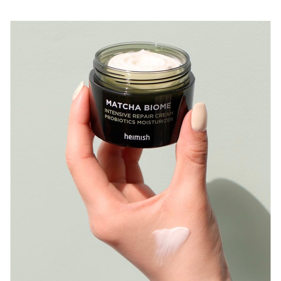 Heimish Matcha Biome Probiotics Moisturizer – tai švelnios formulės drėkinamasis veido kremas, sukurtas specialiai jautriai, sausai ir sudirgusiai odai. Kremo pagrindą sudaro patentuotas Matcha Biome kompleksas, kuriame derinami ekologiškas matcha arbatos ekstraktas ir probiotikai (Lactobacillus Ferment), padedantys palaikyti odos mikrobiomą ir atsparumą aplinkos poveikiui.